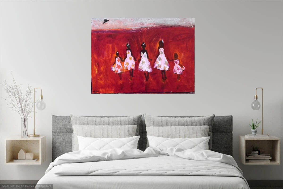 My excuse to let paint and imagination take you on a journey through vast colourful landscapes , beautiful people and children chatting and laughing while heading home at the end of a beautiful day.